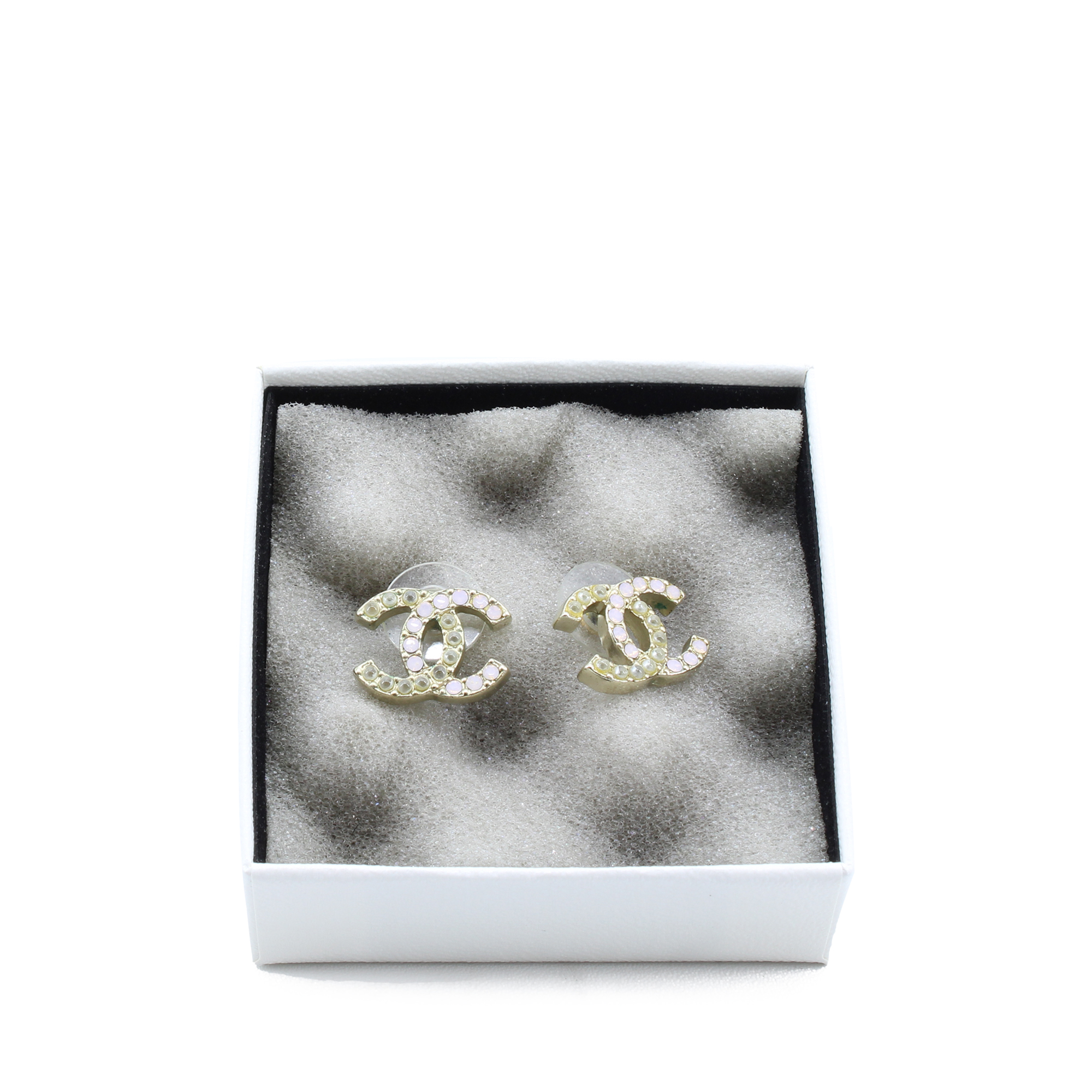 Features: Gold color metallic earrings with light pink rhinestones